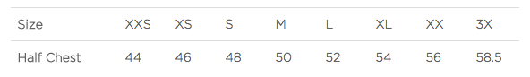 Half Chest (cm) 35 37.5 40 42.5 45 47.5 50