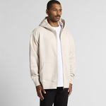 Zip hood, CVC fleece, 2-way YKK zip, inset sleeves, self-fabric hood lining, 2x2 cuff and hem ribbing